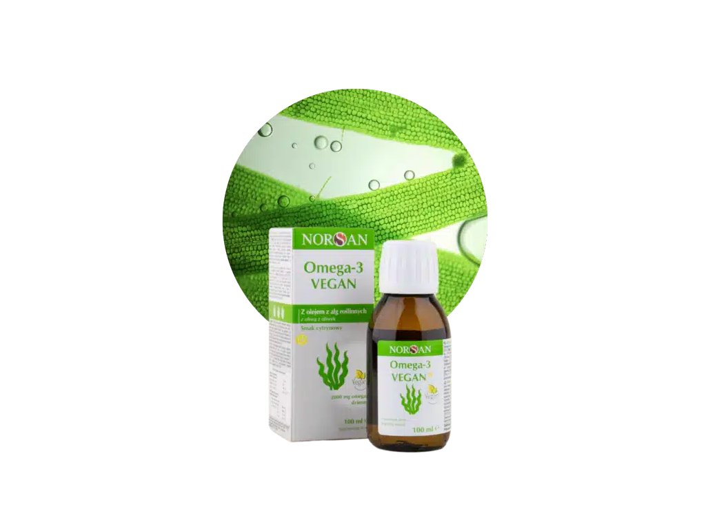 NORSAN Omega-3 Vegan je 100% rostlinný řasový olej, který se extrahuje z mořských mikrořas Schizochytrium sp. Jedná se o mikroskopické řasy, které se živí pouze organickými a rostlinnými látkami, jako jsou odumřelé listy. Mikrořasy Schizochytrium sp. jsou obzvláště bohaté na mořské omega-3 mastné kyseliny DHA a EPA. Proto se perfektně hodí pro výrobu veganského omega-3 oleje. Náš omega-3 řasový olej obsahuje přirozeně vysokou dávku omega-3, nejsou tedy nutná žádná chemická ošetření, jako je koncentrace.